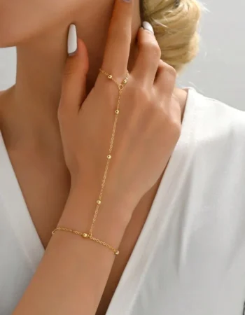 Elegant Stainless Steel Hand Chain Bracelet – Gold Finish