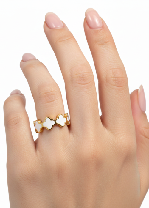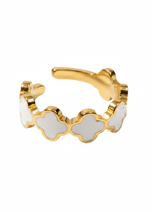 Gold-Plated Stainless Steel White Clover Adjustable Eternity Ring