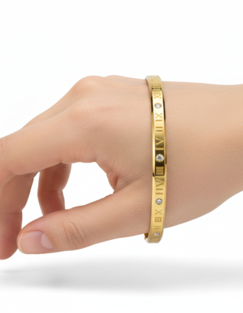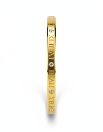 Gold-Plated Stainless Steel Roman Numeral Band with Cubic Zirconia Accents
