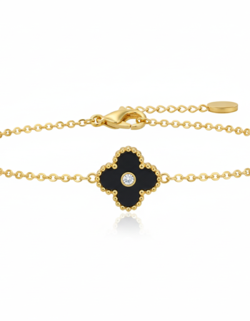 Black and gold Enamel Clover Chain Bracelet