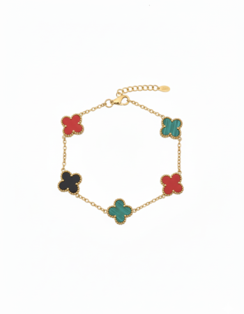 Multi-Color Clover Leaf Station Bracelet in Gold-Tone Stainless Steel