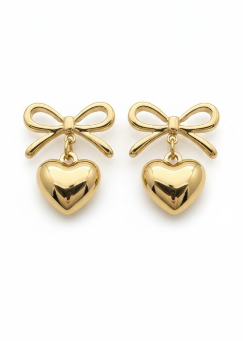 Stainless Steel Bow & Puffy Heart Drop Earrings