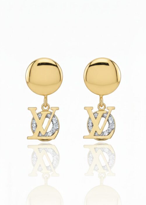 LV Monogram Crystal Circle Drop Earrings