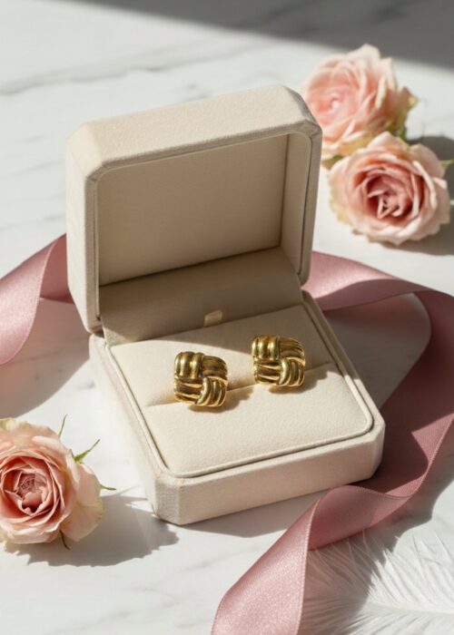 Gold Geometric Woven Square Studs