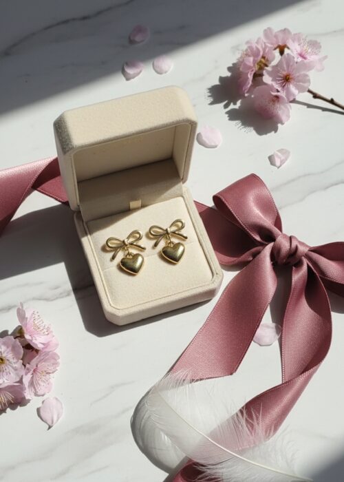 Golden Bow & Radiant Heart Stainless Steel Jewelry Set