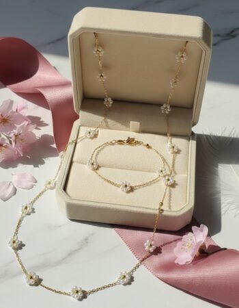 Pearl Daisy Floral Necklace & Bracelet Set