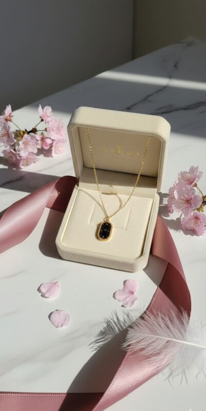 18K Gold Plated Stainless Steel & Black Enamel Medallion