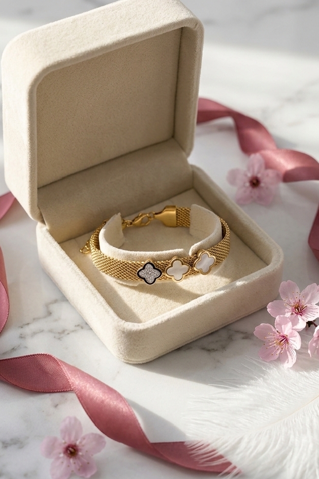 Be the first to review “Clover & Diamond Mesh Statement Bracelet”
