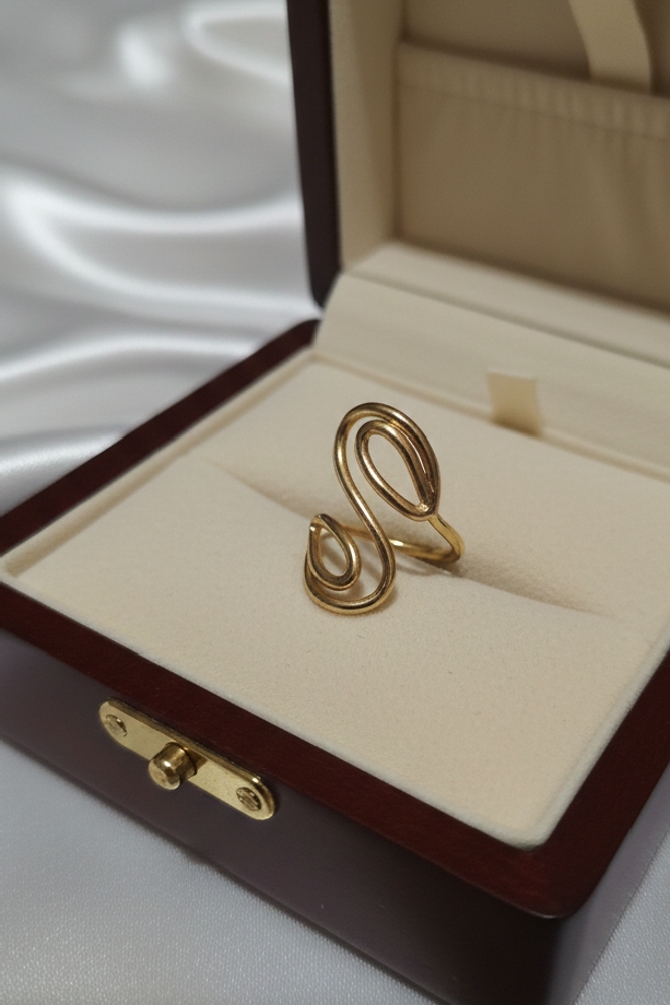 This sculptural gold-plated stainless steel ring is a blend of fluid art and modern jewelry design. Its unique, continuous-wire silhouette creates an elegant “S” or infinity-style loop that feels both organic and high-fashion.