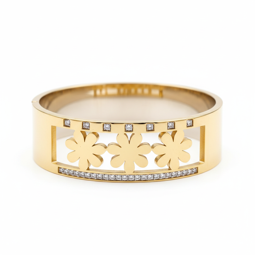 Be the first to review “Floral Cut-Out Bangle with Crystal Accents”