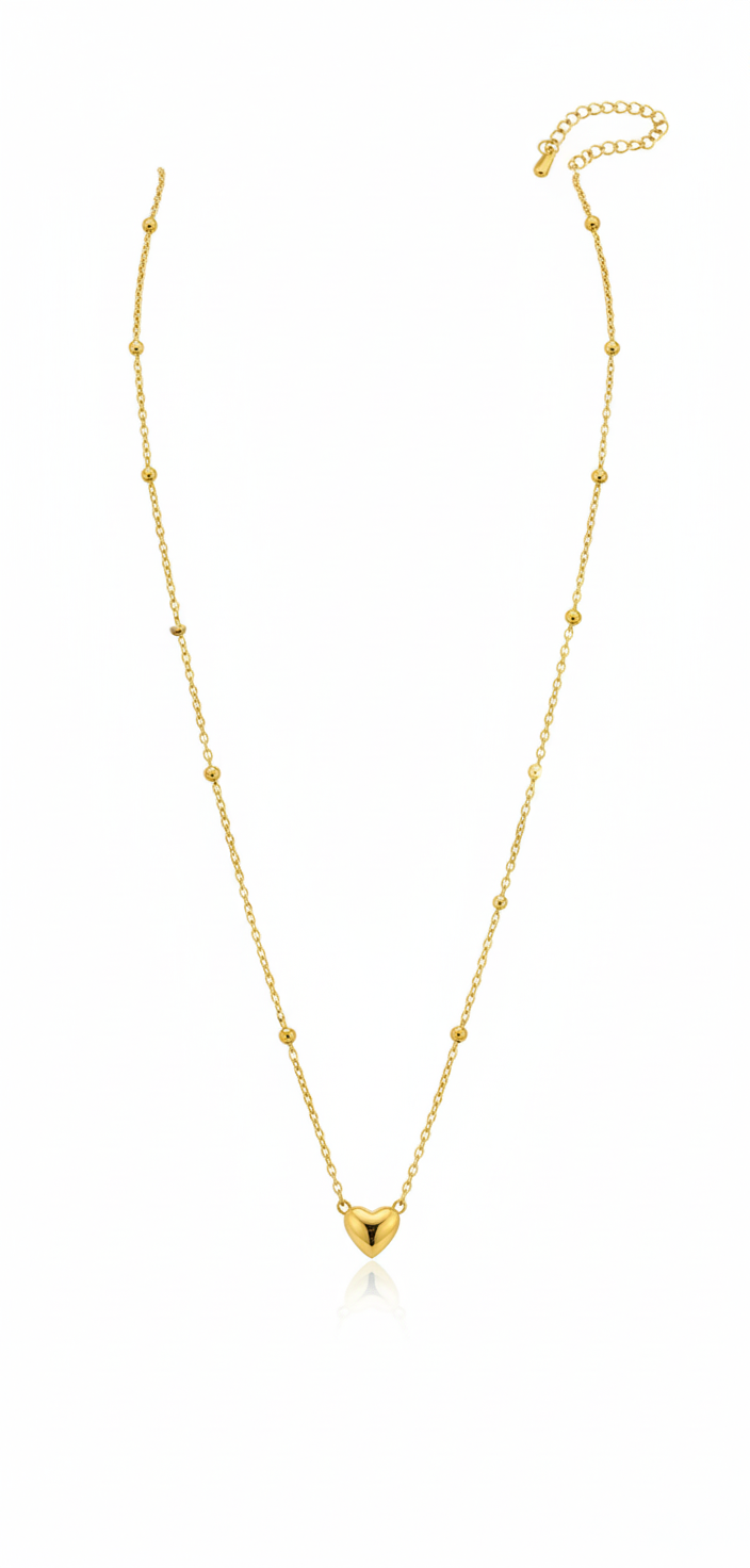 - Elegant Design: Features a charming, polished 3D heart pendant centered on a delicate satellite (bead) chain, blending romantic symbolism with modern minimalism.