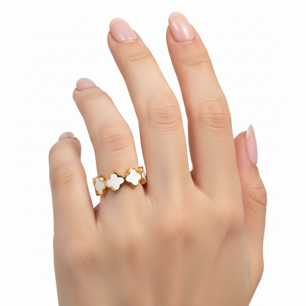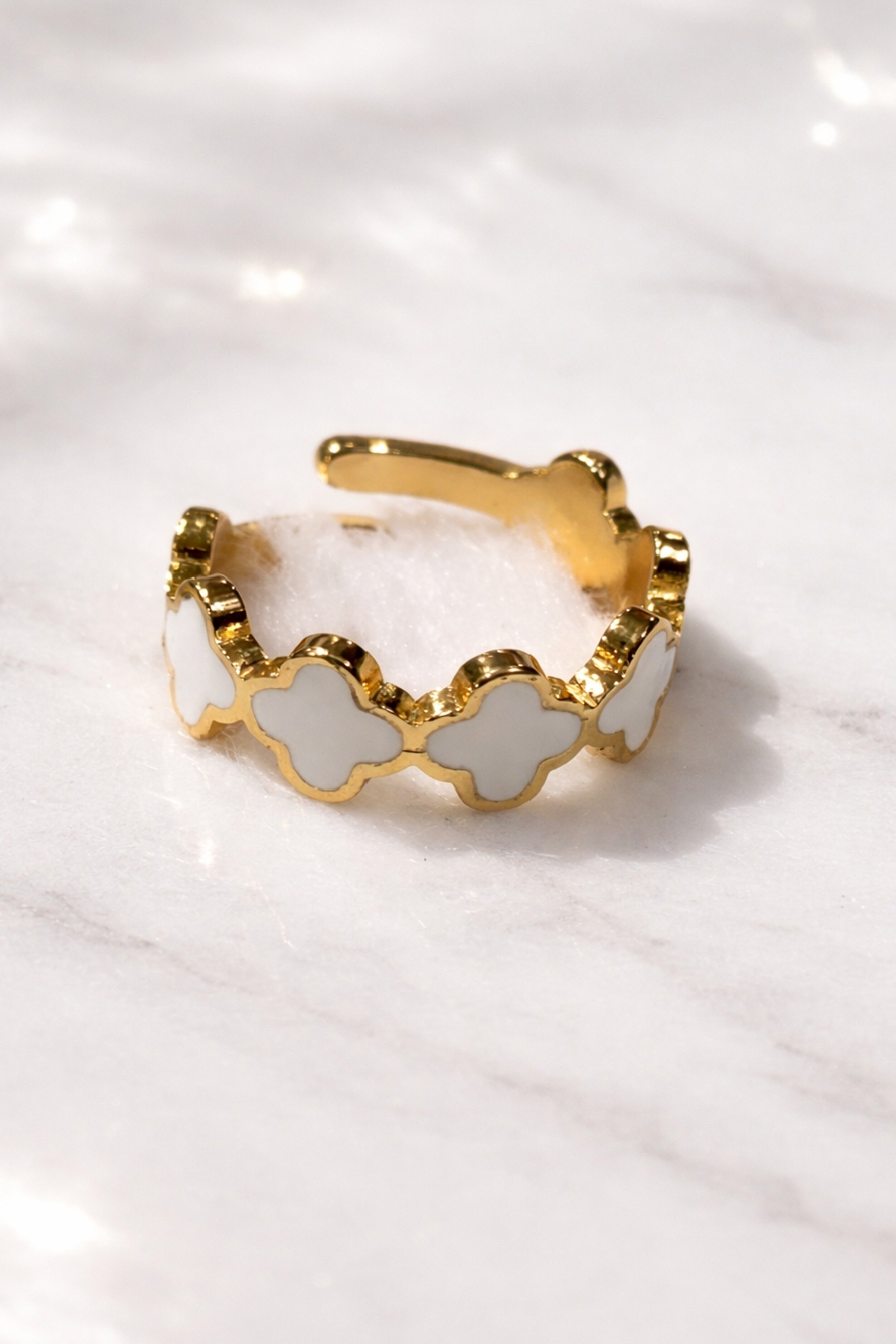 Gold-Plated Stainless Steel White Clover Adjustable Eternity Ring