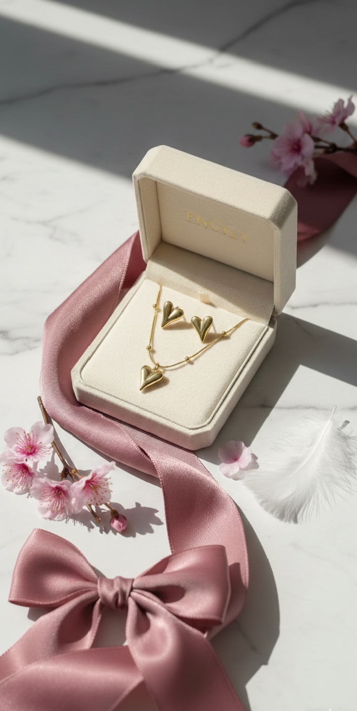 - Design Aesthetic: A matching two-piece set featuring “puffed” or 3D heart motifs. The rounded, voluminous shape of the hearts adds a contemporary, playful feel compared to flat charms.