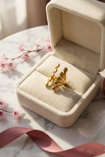 - This ring features a timeless, clover-inspired motif that balances elegance with a modern edge. Given that this is stainless steel jewellery, it offers the luxurious look of gold with the added benefits of durability and resistance to tarnishing.