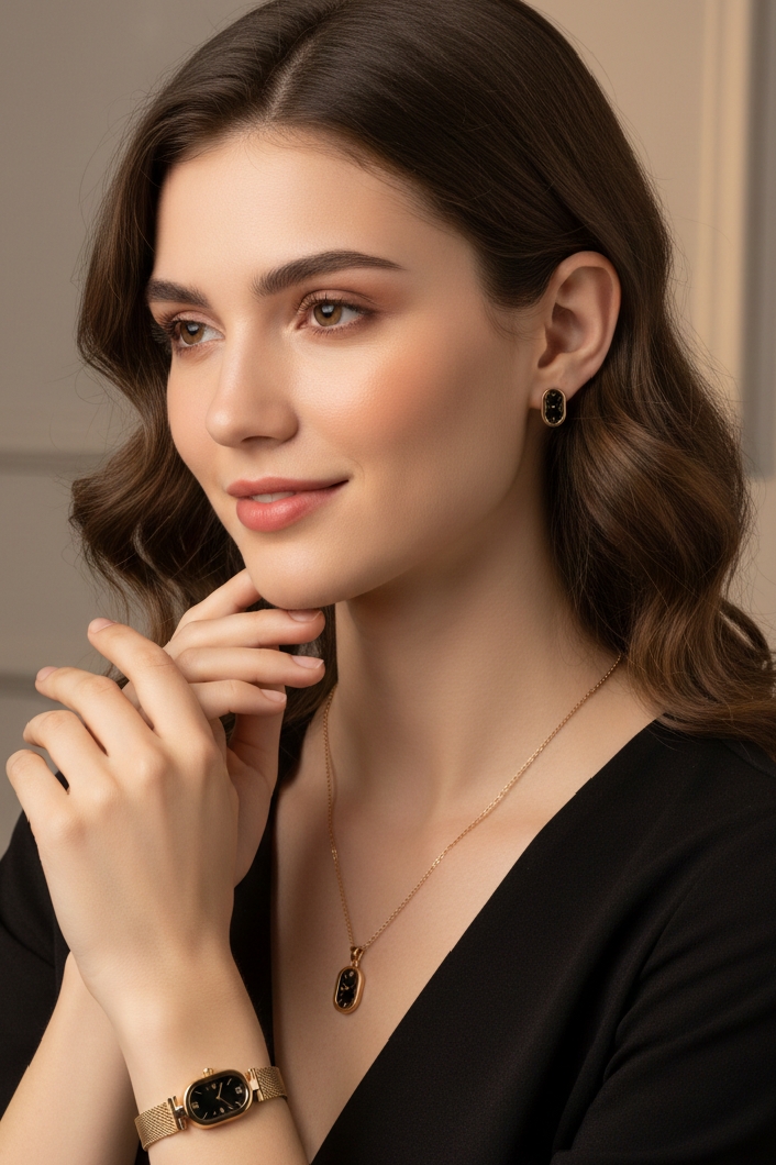- Versatile Aesthetic: The contrast of the gold plating and black enamel makes this set suitable for both professional office wear and evening social events.