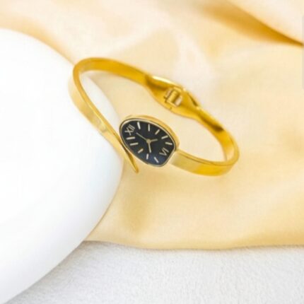 Elegant Stainless Steel “Watch-Face” Bangle – Gold & Black