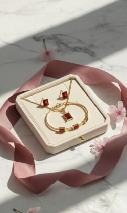 Elevate your accessory game with this stunning 4-piece jewelry set. Drawing inspiration from classic architectural lines, each piece features a vibrant emerald-green baguette-cut crystal framed by a shimmering white shell inlay (Mother of Pearl style). The set is meticulously crafted from high-grade stainless steel with a rich 18K gold PVD plating, ensuring a long-lasting, waterproof finish that won't fade or irritate sensitive skin.